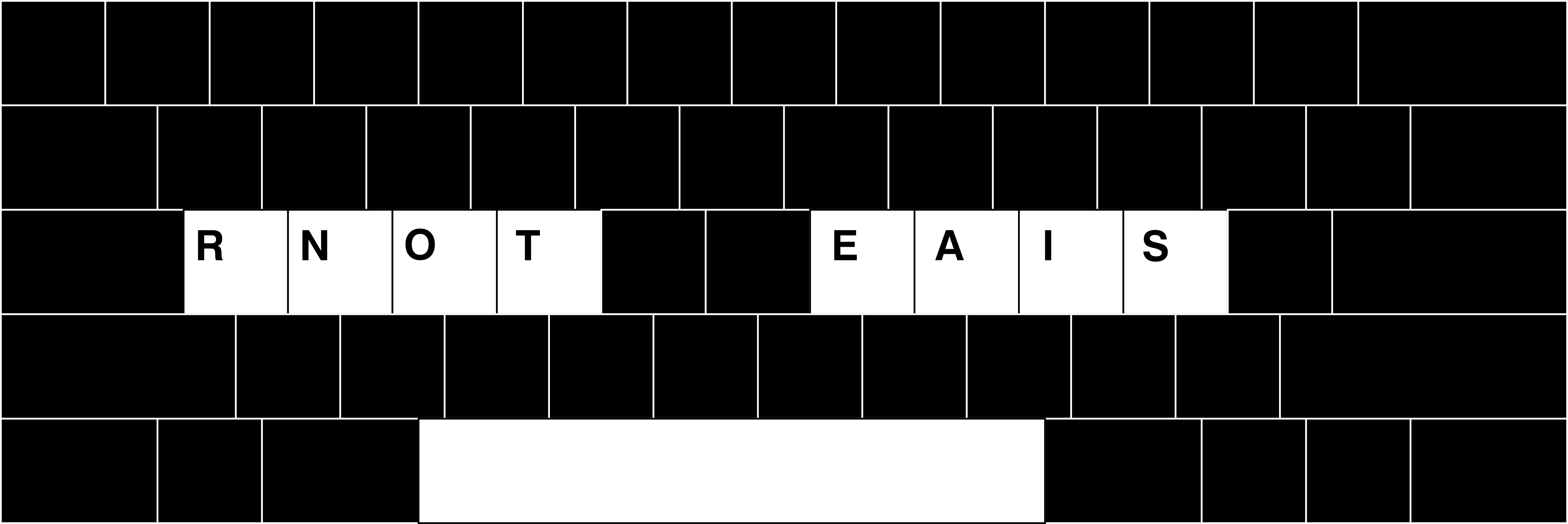 I factored in the English alphabet, and the relative frequencies of letters in common writing. The "RNOT EAIS" selection of letters consists of the 8 most frequent English letters placed alternating on each side from the center outward, with the intent being factoring the greater strength of the index and middle fingers compared to the pinkies.